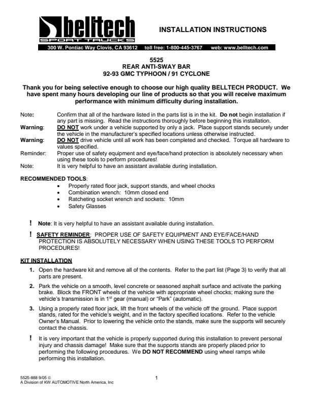 - Includes rear performance sway bar