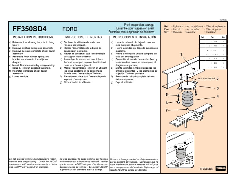 Timbren Suspension Kits (SES Kits) are designed to enhance the suspension of your vehicle. Easiest to use: Rubber cushions absorb road shocks and automatically adjust to uneven loads or road conditions. Easiest to maintain: There are no airlines or fittings to allow leaks. Simply bolt the kit on and you are set for a lifetime of trouble free suspension. Easiest to install: There are no holes to drill, no airlines to route and SES Kits can be installed in a matter of minutes using basic hand tools. The softer ride quality of todays trucks and the mediocre suspensions found on most trailers can cause excessive trailer sway, instability and suspension high performance suspension packages will ensure added safety and peace of mind.